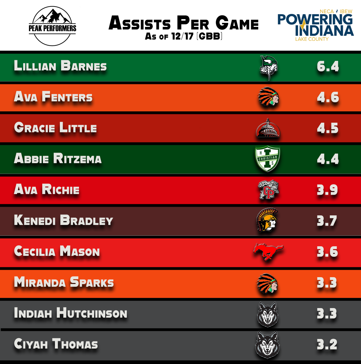 Here are the statistical leaders from around the Region as of 12/17/24!